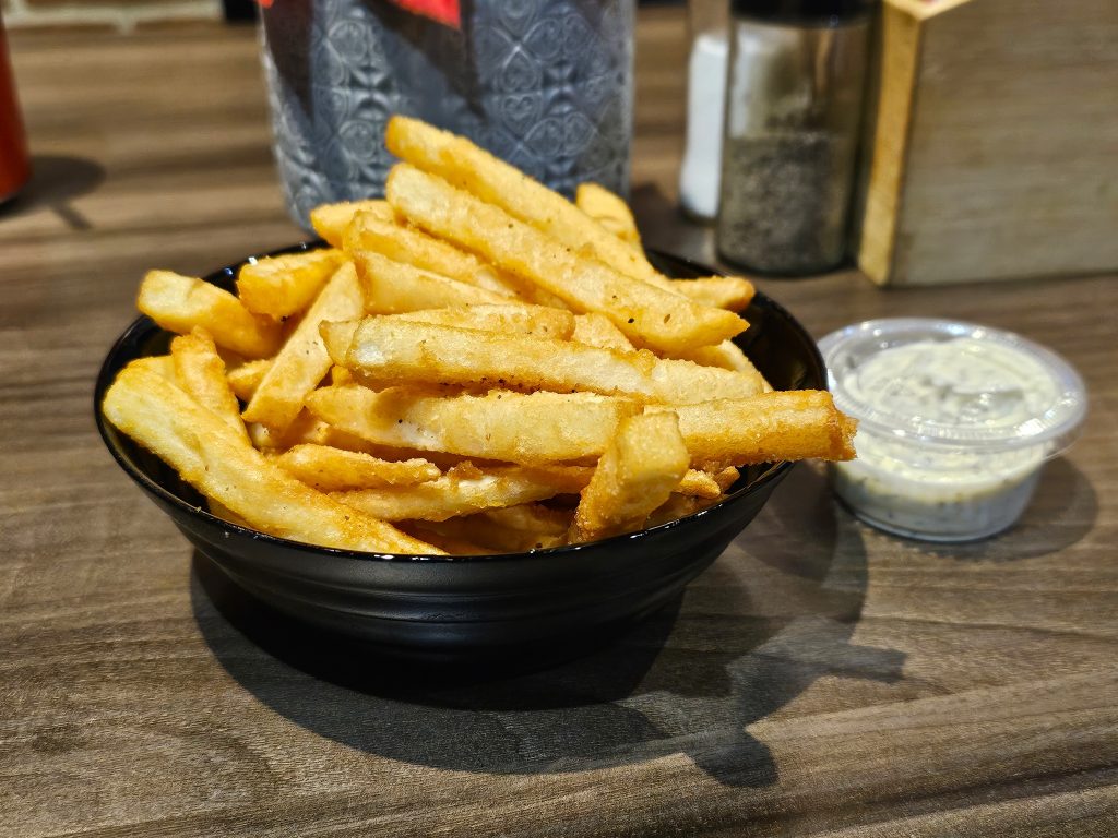 Their french fries stand out because of their crispiness, they are paired with a dill dip if you’re into it